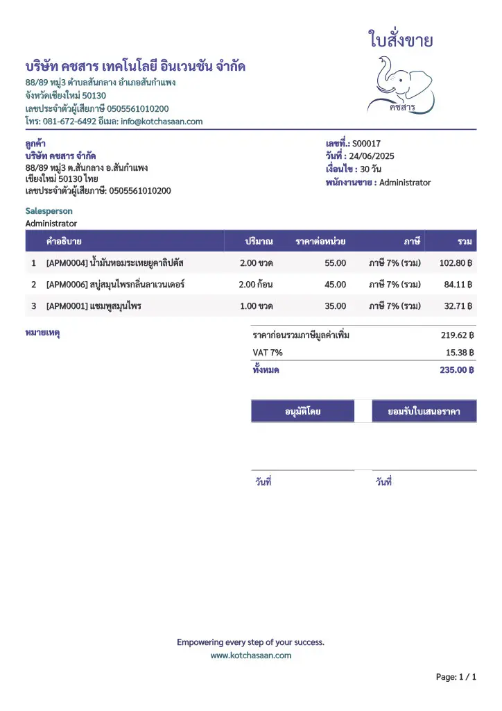 ราคา Package รวมค่า Implementation, Training, และ Support ในช่วง Project แต่ไม่รวมค่า Odoo License (เริ่มต้น $20/user/month) และค่า Server/Cloud